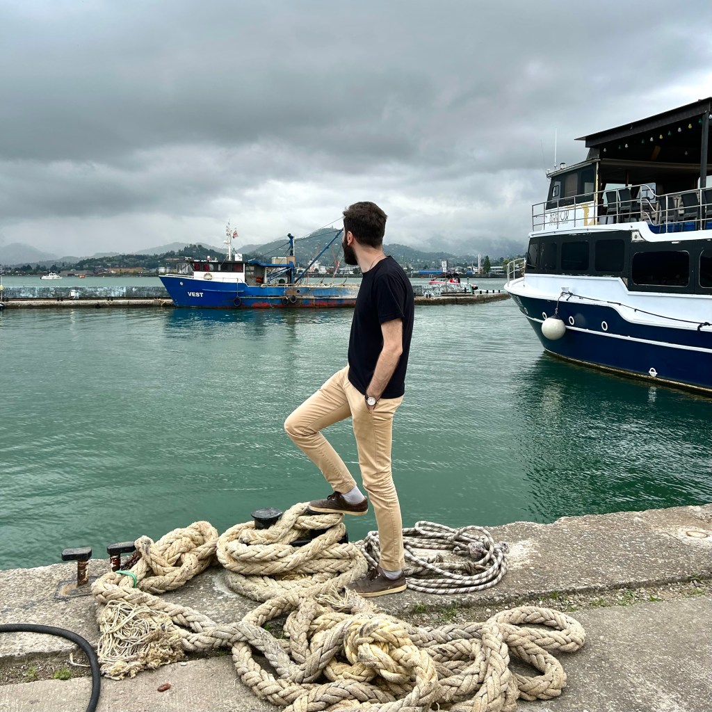 Это я смотрю на какую-то… ржавую посудину. Фотография ещё из прошлого года, сделана перед началом затяжного дождя.